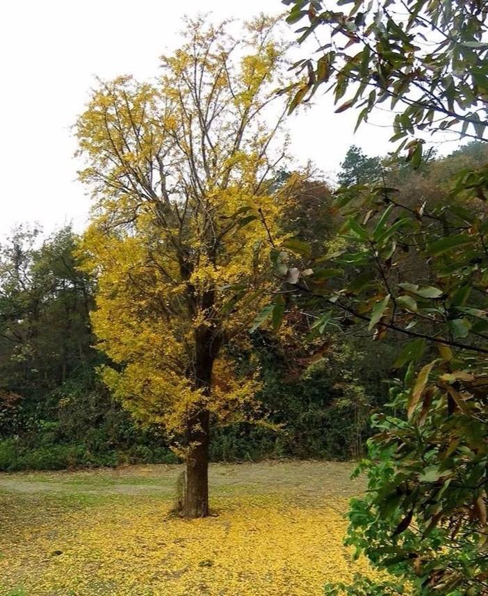 9:00 左右到达武岐山脚下,整理装备,开始徒步。有计步软件的别忘了打开画“心”哦。不久来到2人合抱的大银杏树下,围观拍照。之后顺古道台阶石板路登顶武岐山,欣赏山下风光。