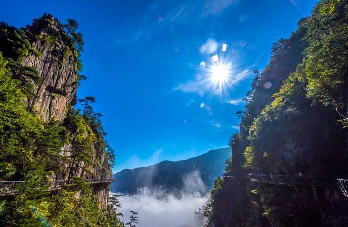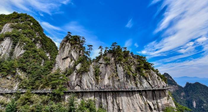 过空中栈道,穿千米钨洞,自由选择坐索道、旱滑道下撤或环线徒步龙门峡谷下撤,最后坐景交返回到景区大门口。