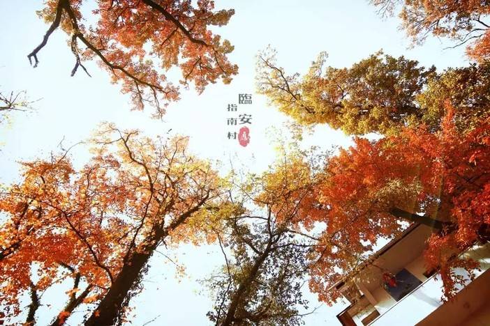 进入临川古道入口。下车,过桥,东苕溪从脚下缓缓流过。一路往上,金黄的银杏叶、火红的枫香叶、巨大的香榧树,在山道边随风摇摆,仿佛热烈欢迎着我们。