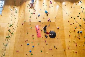 难度区域宽为20米,高度为10米,可以同时10个人进行攀爬,有0度、5度、15-10度不同角度岩壁,共设有5.8-5.12难度路线约20条