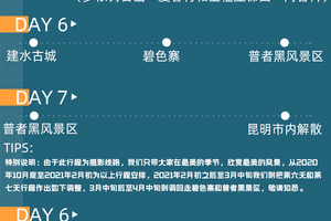 (特别说明:我们只带在最美的季节看最美的风景,当天行程只发10月底至次年2月初,之后当天则改成去罗平油菜花,3月中旬调回走当天行程)