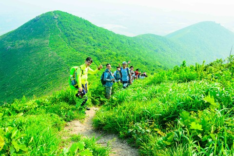 第一尖从竹林小道开始,第二尖逐渐变为树丛中的小道,登高后,后面7尖均为高山草甸地貌。