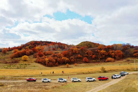 乘坐越野车深入草原,金色的白桦疏林、沙榆、红柳交相辉映,一路风光无限。越野车会在风景美的地方停下,我们可以下车拍照,游玩、尽情的奔跑。