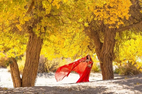 今天就是大家的全天自由玩乐时间。我们在胡杨林景区为大家安排了【拍摄旅行写真】服务,大家可以根据天气情况准备些好看的裙子或服装,我们的摄影师会寻找机位为大家拍摄美美的照片。