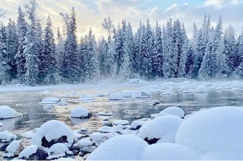 之后前往乘车赴【喀纳斯景区】,气势磅礴的莽莽雪原,晶莹剔透的桦林雾凇,白雪皑皑的冰湖,炊烟袅袅的村庄,水墨世界的禾木,晨雾弥漫的神仙湾,寂静安详的白哈巴,还有图瓦人的马拉爬犁,这些构筑了喀纳斯的绝世胜景。喀纳斯的冬天是一个黑白分明的世界,不像春天那样清澈透明,夏天那样碧波荡漾,秋天那样浓绿尽染,但却冰清玉洁、银装素裹,恬静而又寂寞,沉静而又漫长。冬日的喀纳斯是白色调的冰雪世界,厚厚的雪层将喀纳斯的一切都变得纯净。晚入住喀纳斯村庄。