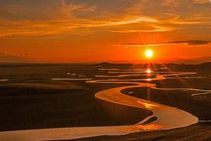 日落时分赶往巴音布鲁克大草原。巴音布鲁克草原景区又名天鹅湖景区,在 蒙古语中意为丰泉——“丰富的泉水”。这里的草原水草丰茂,遍布着河流和湖泊,而草原周围则由山峦环抱,连绵的丘陵和辽阔的草甸相间,景色十分漂亮。巴音布鲁克草原内有著名的巴音布鲁克天鹅湖和九曲十八弯等景观。