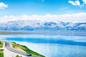 早上用完早餐出发,行车约2个小时,抵达赛里木湖。赛里木湖是新疆海拔最高、面积最大、风光秀丽的高山湖泊,又是大西洋暖湿气流最后眷顾的地方,因此被称作“大西洋最后一滴眼泪”,它背靠雪山,湖边是广阔的草原,湖水清澈蔚蓝,因风景绝美一直是新疆最著名的几大景点之一。这里最佳游玩季节是每年的六七月份,此时湖边草原上开满了各色的野花,应照着雪山下的蔚蓝湖水,是不可错过的盛景。今天还有本次行程的重点:赛里木湖环湖约90公里。我们的大巴车将带大家环湖,一边环一边下车游玩,从不同的角度欣赏赛里木湖的美。就这样绕湖游览高山湖泊优美自然景观,成吉思汗点将台及白天鹅自然保护区。而且我们游玩的时间也非常的充裕,美女们可以带上漂亮的裙子在湖边尽情的拍照,