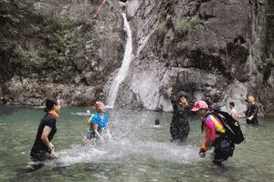 溯溪逆流而上,大家相互帮助,克服重重险阻。一路打水仗,戏水,跳潭(注意安全),开启湿身之旅,尽兴后沿旱路环线返回。