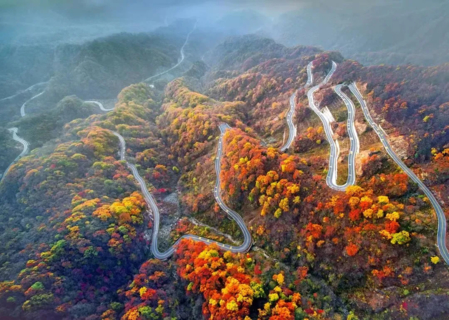 自驾穿越中国红岭公路,赏秋日里的炫目童话 置身马鬃岭,品红叶飘丹的斑斓梦境 登临天堂寨,看尽秋日里的五花山色
