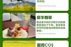 1. 【独家全景】:独家策划的经典滇东南大环线,所有精华景点,全部一网打尽,不留遗憾。前往《庆余年》《芳华》《三生三世》等影视拍摄地,以及万花筒艺术馆《东风韵》只带您在最美的季节看醉美的风景。