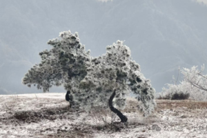 早餐后,车队开始驱车前往牛草山,运气好的话能欣赏到雾凇冰挂,如果是雪后那就更美了。后继续穿越大别山主峰的天河尖,开车直上云端,打卡最美风车山脊线!