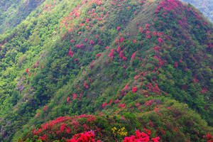 鲜艳的映山红在满目绿意的山林里汇聚成“海洋”,用最纯粹的颜色,将春天的美好写意到极致。