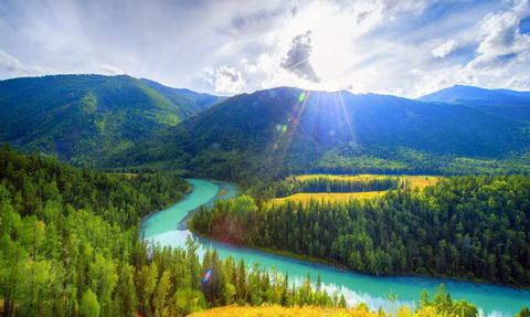 早餐后,约9:00集合,我们就开始本次行程的重点:游览喀纳斯三湾。首先我们去乘换中心坐前往贾登峪方向的区间车,一路欣赏高山花卉、草原风光。