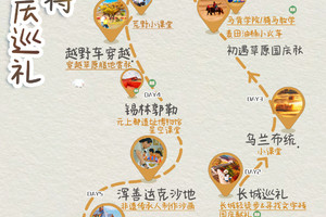 用 “5 天 4 夜” 的沉浸式体验,带亲子家庭深度探访 ——国歌中的长城、走进广袤草原秋色、七彩斑斓森林、浑善达克沙地奇观,更有麦田地中私藏的营地探访游牧人文印记,邂逅可以媲美新疆“禾木村落”的原始牧村,走进北欧童话世界崇礼太舞小镇......