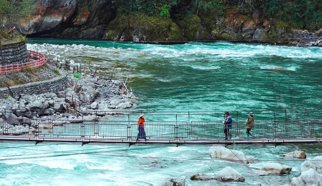 我们一直沿着独龙江大峡谷深入,先前往一个原生态的村子【普卡旺村】,这里的水清澈见底!可以亲临水边,走到吊桥满慢慢欣赏。