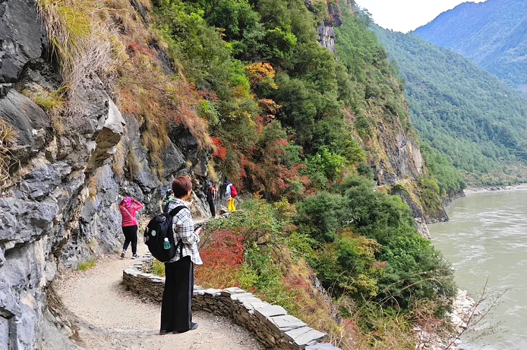 温馨提示:我们选择虎跳峡高路最美和最精华的路段进行体验,且路面无爬升和坡度,单程约2.5KM,步行时长30-40分钟,往返1-1.5小时,无难度和强度,非常轻松,属于休闲观景体验!