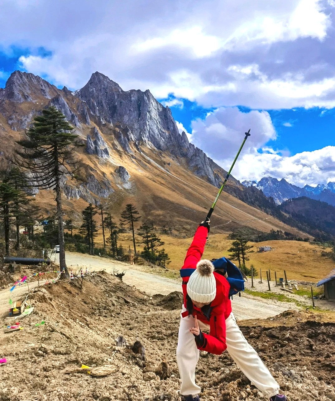 早起看“梅里”日照金山,当第一缕朝阳把“梅里”主峰“卡瓦格博”染成了金色,那耀眼的金色让每个人心潮澎湃,内心震憾。早餐、闲逛、晒太阳、侃大山……到梅里雪山观景台,眺望云南至今没人征服的云南第一高峰海拔6740米的梅里雪山全景。适时出发,先途径【迎宾十三白塔】,在这里凹照型和雪山合影,效果杠杠滴;随后出发,穿越【白马雪山垭口】,这里的视野极其开阔,秋景极佳,堪称一绝。深秋的白马雪山,层林尽染,雪山,蓝天,初雪,黄林,绘出一幅唯美画卷。红叶映雪峰,简直就是赏秋天花板。