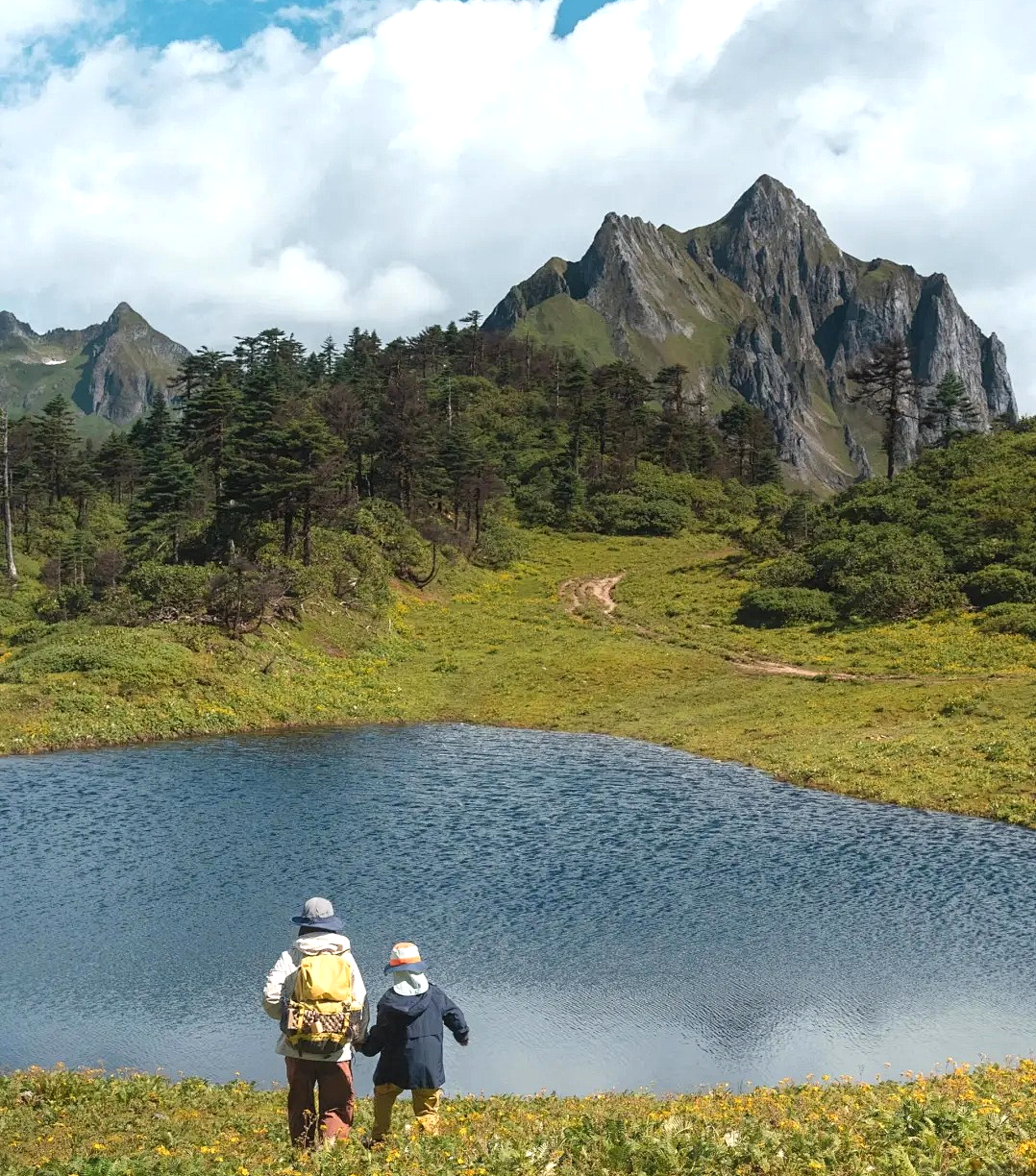 一路上途径【孔雀山垭口】,开启今天的孔雀山轻徒步,这里没有开发,没有游客。整个徒步过程只能听到动物的叫声、风吹过的声音、云流动的声音和自己的呼吸声,仿佛在探秘一个与世隔绝的童话世界,可以选择2KM(到达三连湖后返回)或4KM左右 ,难度强度都不大,轻松入门级别,风景真的超值!
