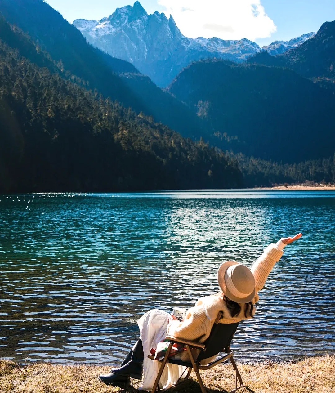 随后我们在湖边享用一杯【湖边咖啡】或【酥油茶】,坐着发发呆,慢节奏的看湖光山色,尽享静谧休闲时光。