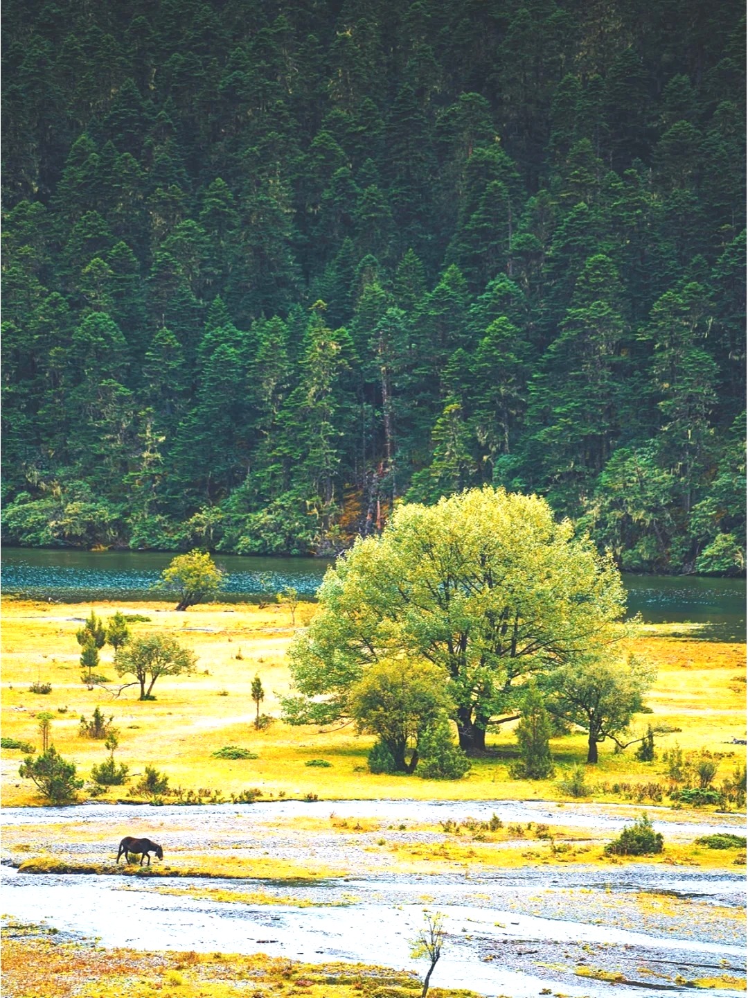 早餐后前往【无底湖湖边】。无底湖婉约清秀,就像恋人的一见钟情,看到无底湖的第一眼,你就能彻底爱上她。湖水灵动,牧场开阔,森林环绕,马儿悠闲地吃着草,不时抬头看一眼路过的人们,完全符合对于世外桃源的想象。秋天的无底湖更是美得像童话,晨曦光影的变化给牧场及湖面赋予了生命力,您可以穿过湖畔的原始森林,沿湖一圈回到起点,路线简单直接几乎没有爬升,也可直接绕湖慢慢走走。森林里泥土很松软,长满了苔藓,树上也挂着面条一样的松萝,这也是滇金丝猴最爱的主食…随处可见花栗鼠,小小一只一点也不怕游人,可以带点坚果瓜子给它们。林间漫步,脚踩松软的苔类植被,能让你一下子放松下来。