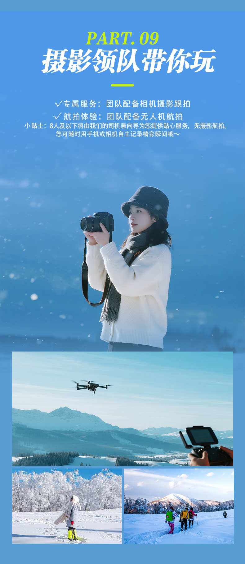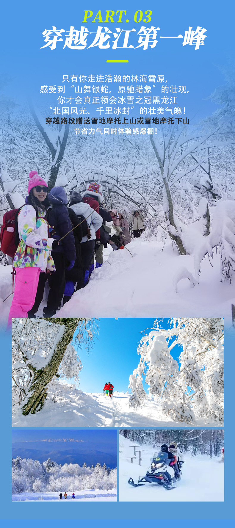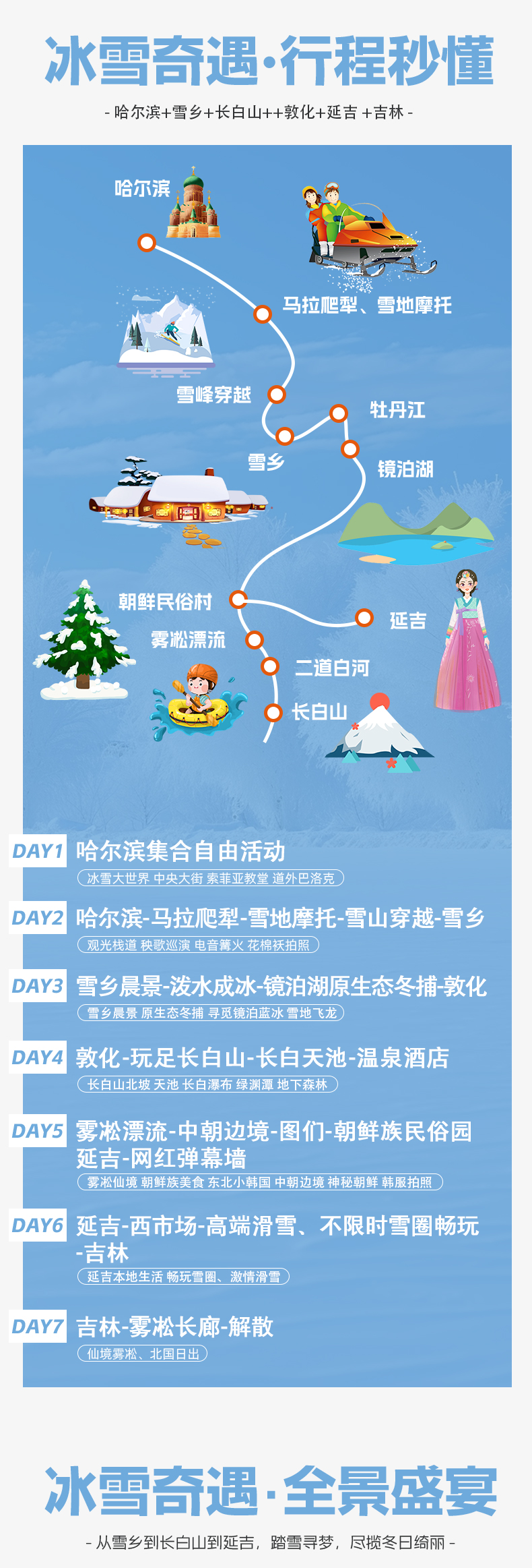滑雪温泉 雾凇漂流 寒地冬捕 雪山徒步 雪地摩托 马拉爬犁 民俗体验