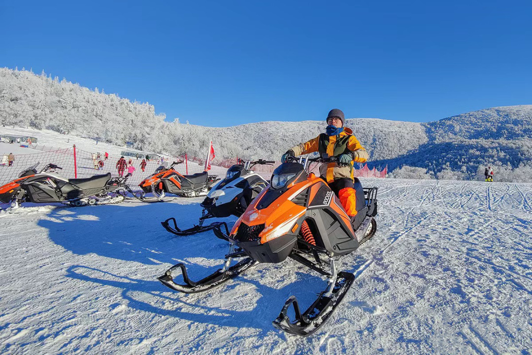紧接着,让我们跨上【雪地摩托】,在无垠的雪原上尽情驰骋。风从耳畔呼啸而过,溅起的雪花在阳光下闪闪发亮,这一刻,我们都是自由的追风少年。