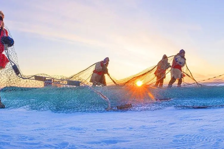午餐后,我们将开启今天的重头戏——镜泊湖冬捕体验。乘坐【雪地飞龙】在冰面上飞驰,感受寒风拂面的刺激与畅快。在渔工的指导下,亲身体验传承千年的冬捕技艺。当第一网鱼从冰洞中捞出,活蹦乱跳的鱼儿在冰面上跳跃,那种收获的喜悦与震撼,将成为终生难忘的记忆。