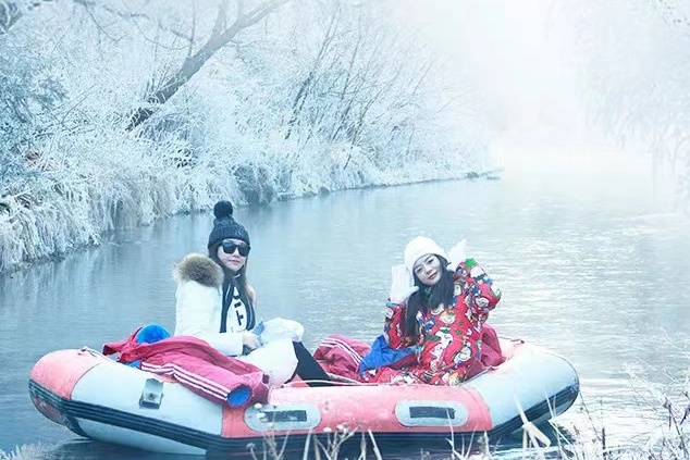 当大地还在沉睡,我们已经出发。晨雾如轻纱般笼罩着不冻河,河岸两旁的树枝上挂满晶莹的霜花,宛如踏入仙境。乘坐皮筏在零下30℃的河面上漂流,呼出的白气与河面的雾气交织,睫毛上结着细小的冰晶,这一刻,我们仿佛成了冰雪童话里的主角。