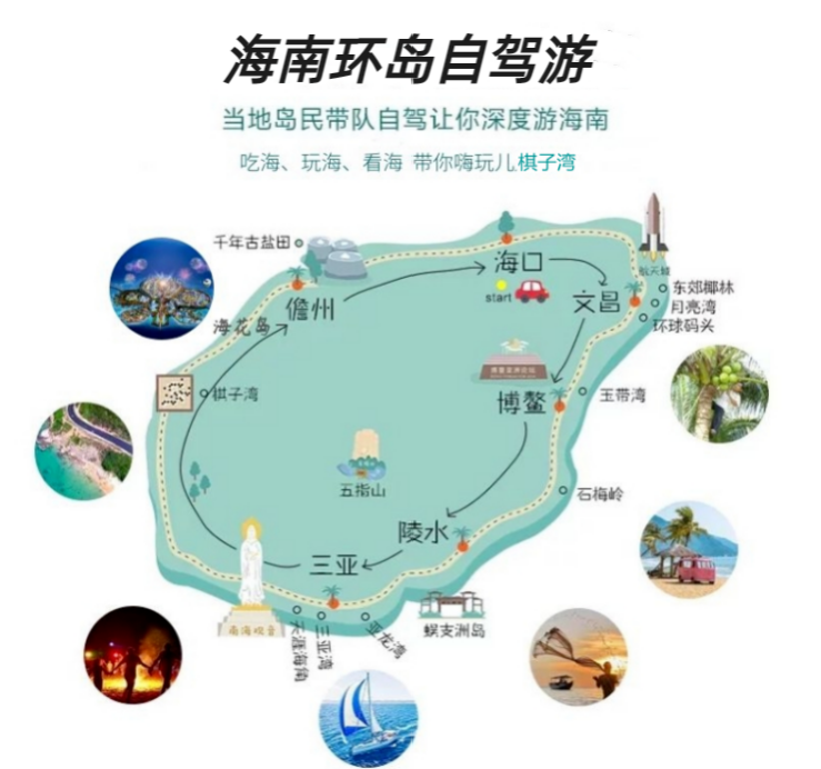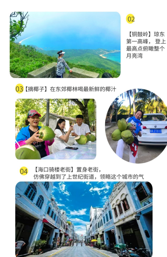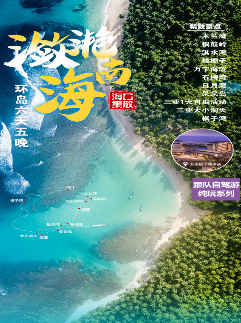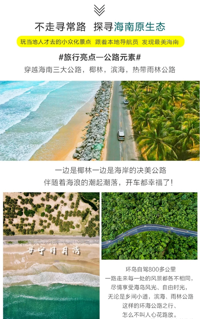 行程特色:纯玩海岛游,全程落地环岛自驾体验,吃海、玩海、看海 带你嗨玩儿海南岛