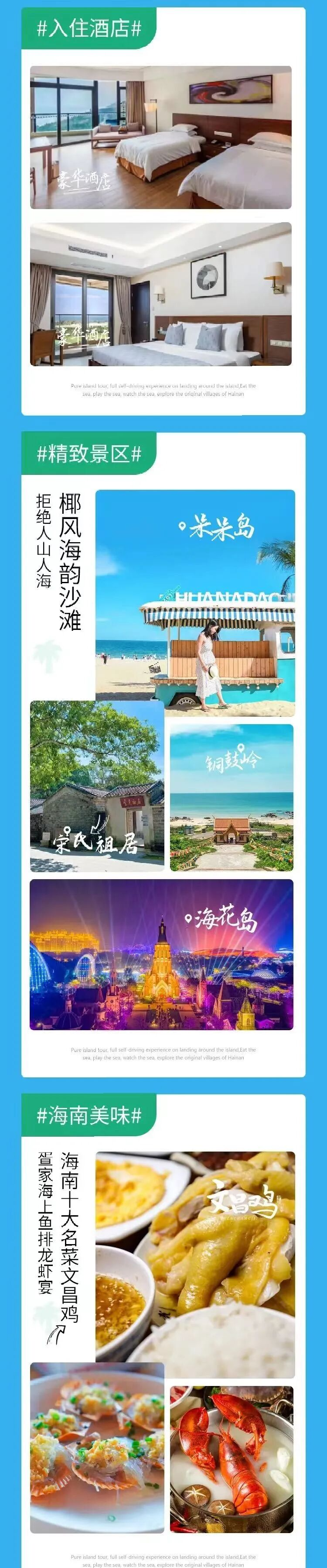 另外环岛自驾游玩结束后,还可以继续参加我们组织的西沙群岛的活动,我们将会给更大的优惠。详情咨询客服微信