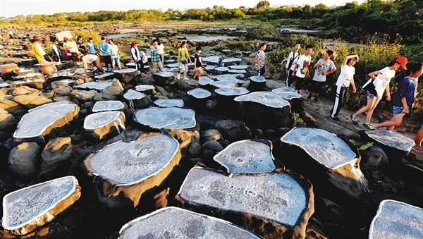 【儋州千年古盐田】,海南千年古盐田被誉为最早采用日晒的制盐场,保留完好的原始民间制盐工序的古盐场。有1000多个形态各异的砚式石盐槽密布海滩。盐田村仍有30多户盐工,每天都在这片盐田上沿袭着1200多年来的古老方式劳作。