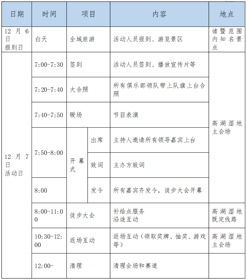 13KM徒步组:主会场出发逆时针绕高湖湿地一圈后返回主会场,全程徒步绿道,关门时间为3个小时。