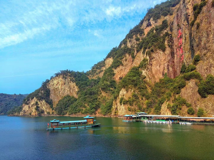 第一站前往【斗岩景区】(大会赠送游览,游览时间约1.5小时)。斗岩景区有【点将台】、【斗岩大佛】、【金井龙潭】、【仙洞府】、【千步云梯】、【白云禅院】、【龙王殿】、【千佛聚首】等大小景点五十多处,由F形主游道呈放射状连接,游客可以顺游道石阶逐一登临观赏。斗岩大佛 到达斗岩景区,抬头远望,便可见到斗岩大佛。大佛位于景区西黄山东侧,整个佛像由一块巨岩构成,除面部稍有修饰外,全尊坐像轮廓自然天成,是中国第一天然大佛。佛像高81.6米,由头、胸、腹三部分组成,比四川乐山大佛还高21.4米。该佛头大、身小,腹部隐入树林中,呈趺坐人定状。佛头宽30米,高37米,慈眉善目,微笑祥和,远视更佳。游览【西施故里】(大会赠送游览,游览时间约1.5小时)诸暨西施故里旅游区是绍兴市两个国家级风景名胜区之一的五泄国家重点风景名胜区的重要组成部分(另一个是新昌天姥山风景名胜区),也是国家AAAA级景区。规划目标以西施文化为主题,充分展示古越文化和故里风情,将本区域建设成为一处自然风光优美、文化内涵丰富、游览设施健全、经济效益良好、具有时代活力的风景游览胜地。