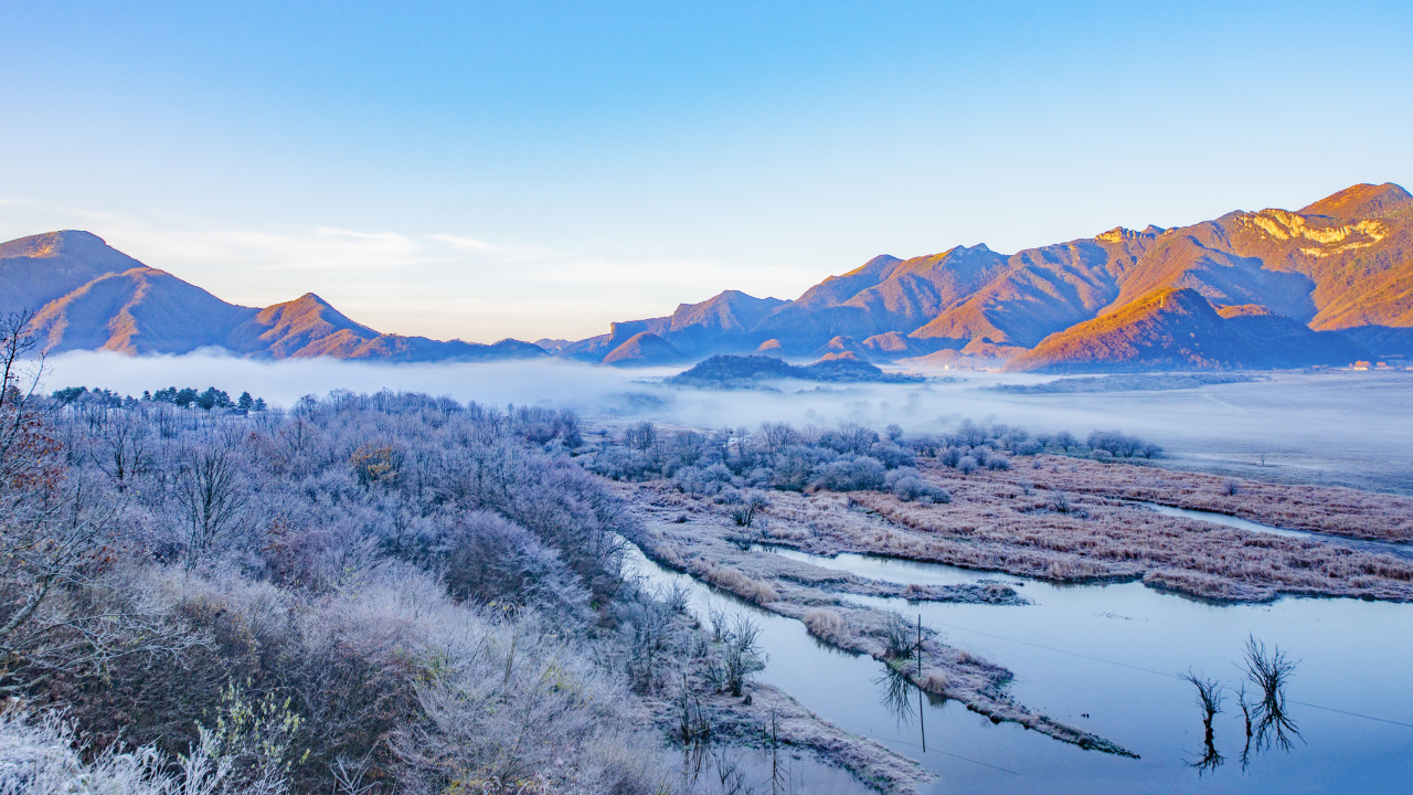 当凛冽的风洗净天空,群山披上厚厚的雪袄,大九湖便进入了它一年中最静谧、最诗意的季节。湖面不再泛起粼粼波光,而是凝结成一面巨大的镜子,倒映着雾凇、远山和偶尔飞过的寒鸦。