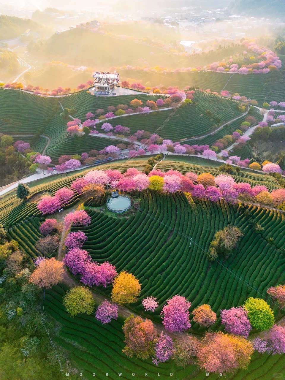 被《国家地理》评为中国最美樱花茶园有多绝?!!