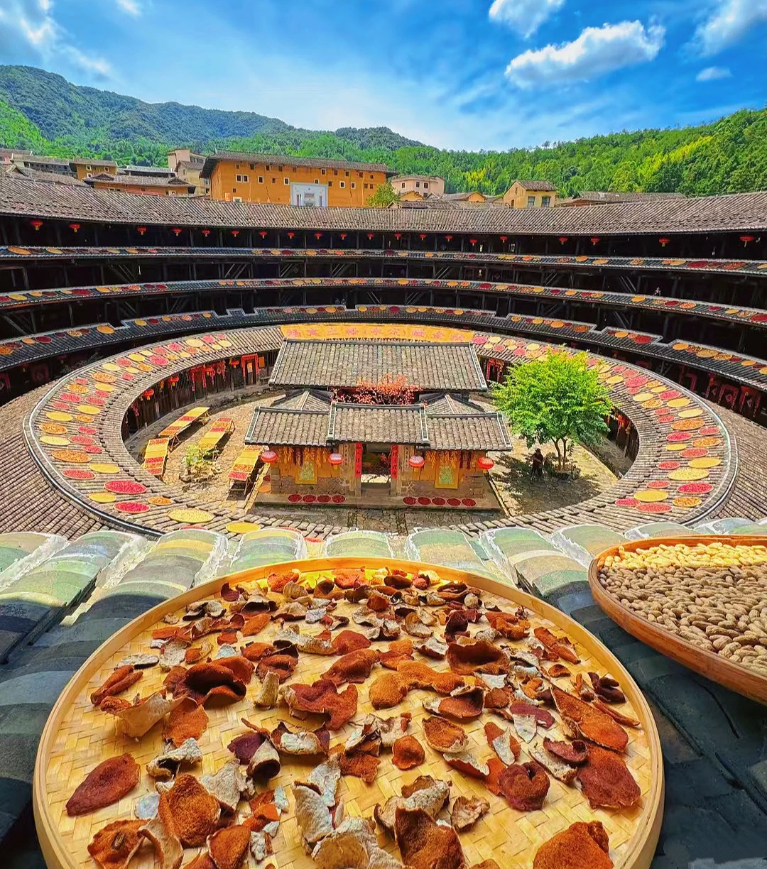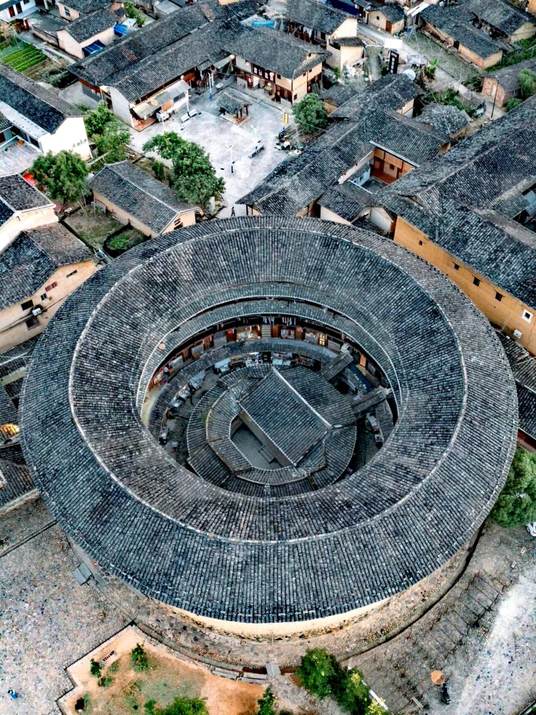 早饭后,我们去前往和贵楼:和贵楼有四奇:一奇他是已知所有福建土楼里个头最高的方楼;二奇他是建在沼泽地上的土楼,整座楼像一艘大船停泊在沼泽地上,虽历经200多年仍坚固稳定,巍然屹立;三奇是楼内有二口水井,相距不过十多米,却一口清亮如镜,水质甜美,另一口却混浊发黄,污秽不堪,被人称为"阴阳井;四奇是因为和贵楼结构是楼包厝-厝包楼的特征。