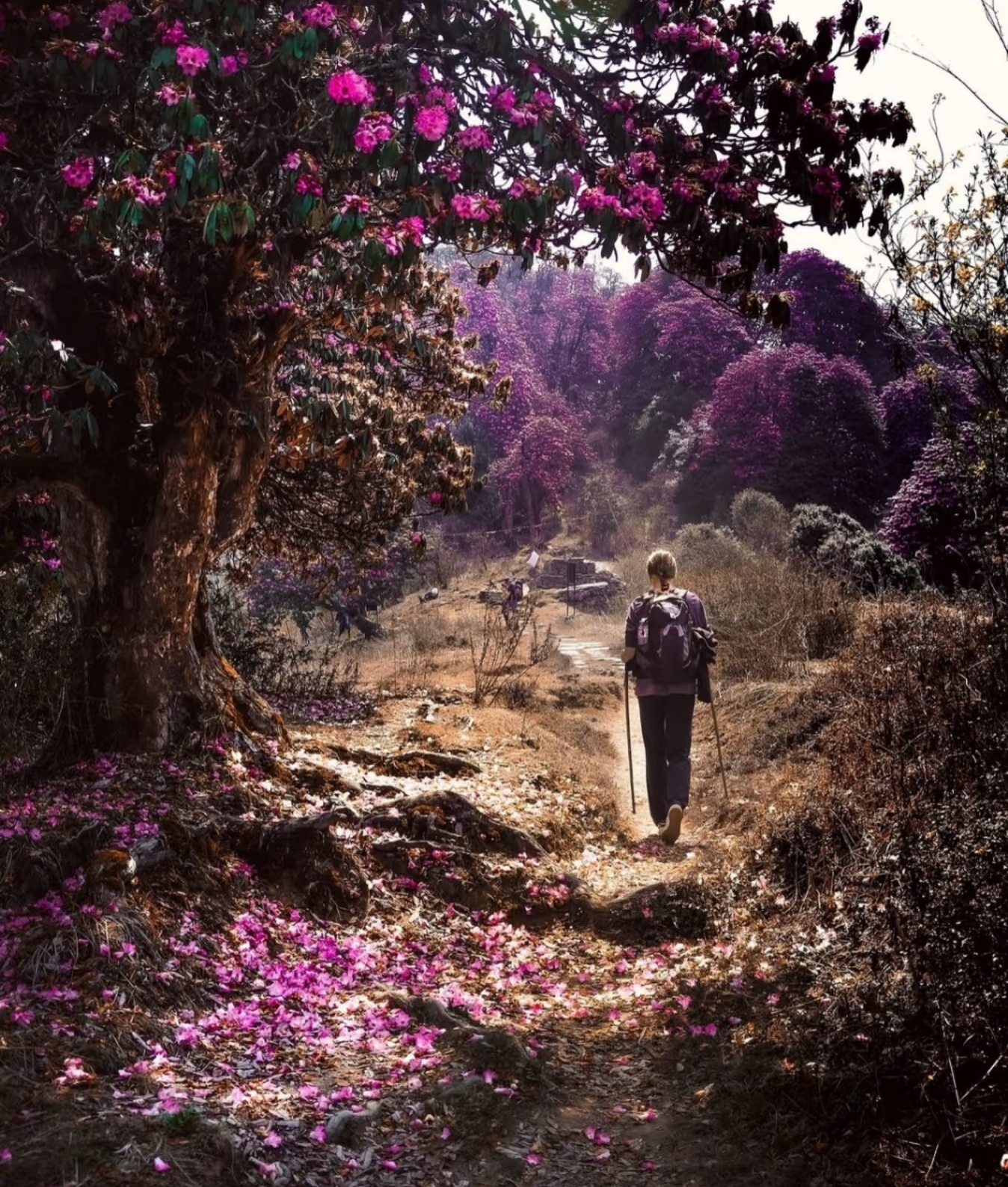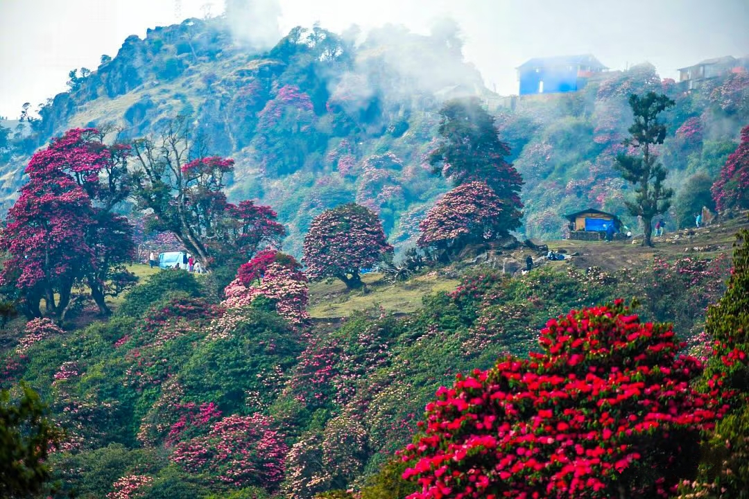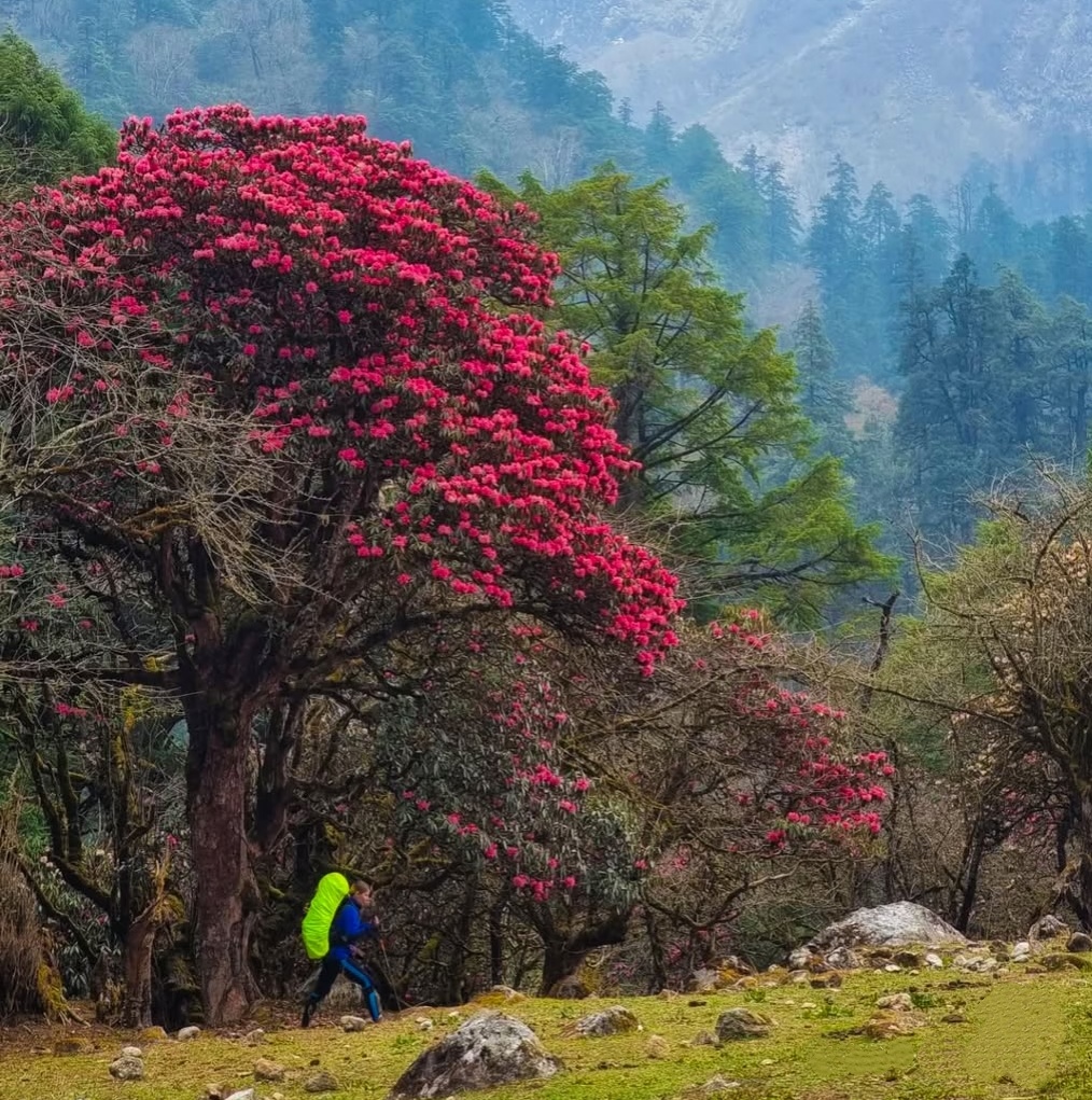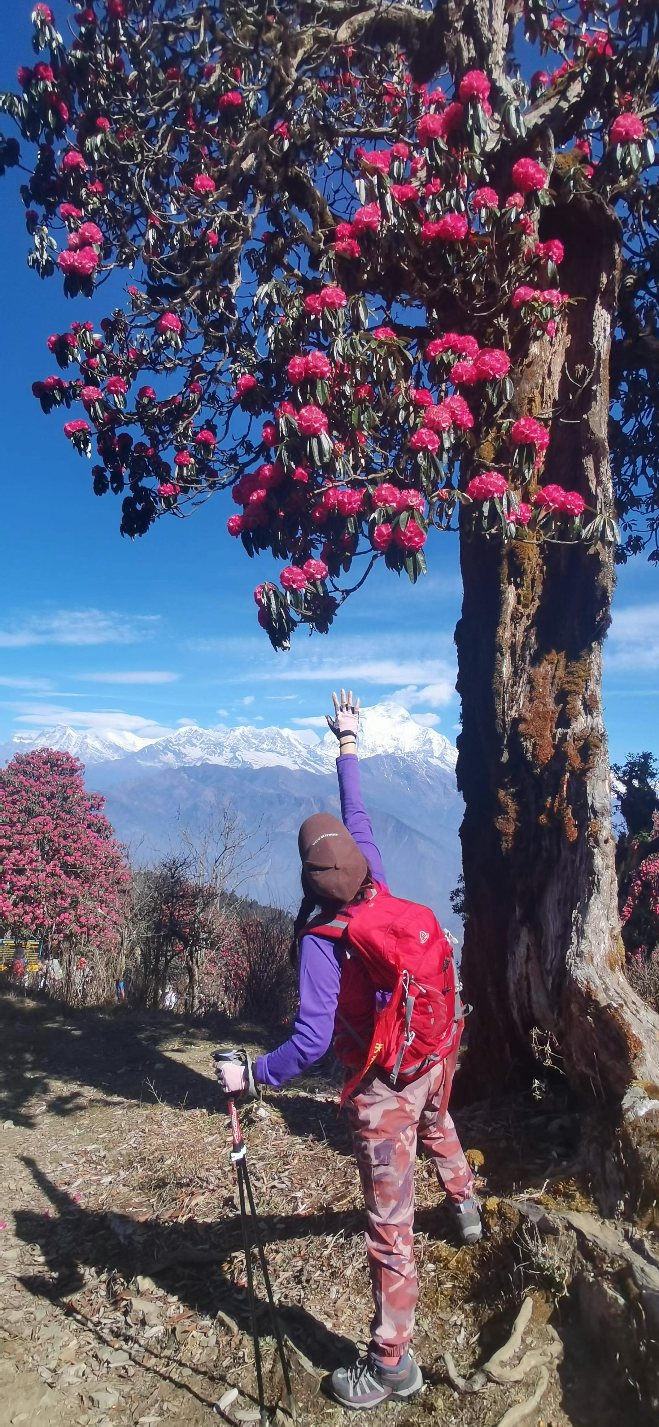 雪山王国尼泊尔,藏着世界级的春日浪漫!每年3月中旬至4月初,是杜鹃花的盛花期。从低海拔山谷到雪山脚下,各种珍稀高山杜鹃如云霞绽放,粉紫艳红交织成海,与圣洁雪山、飘扬经幡构成独特的自然奇观,本届尼泊尔徒步大会正是奔赴这场盛宴的最佳时节。
