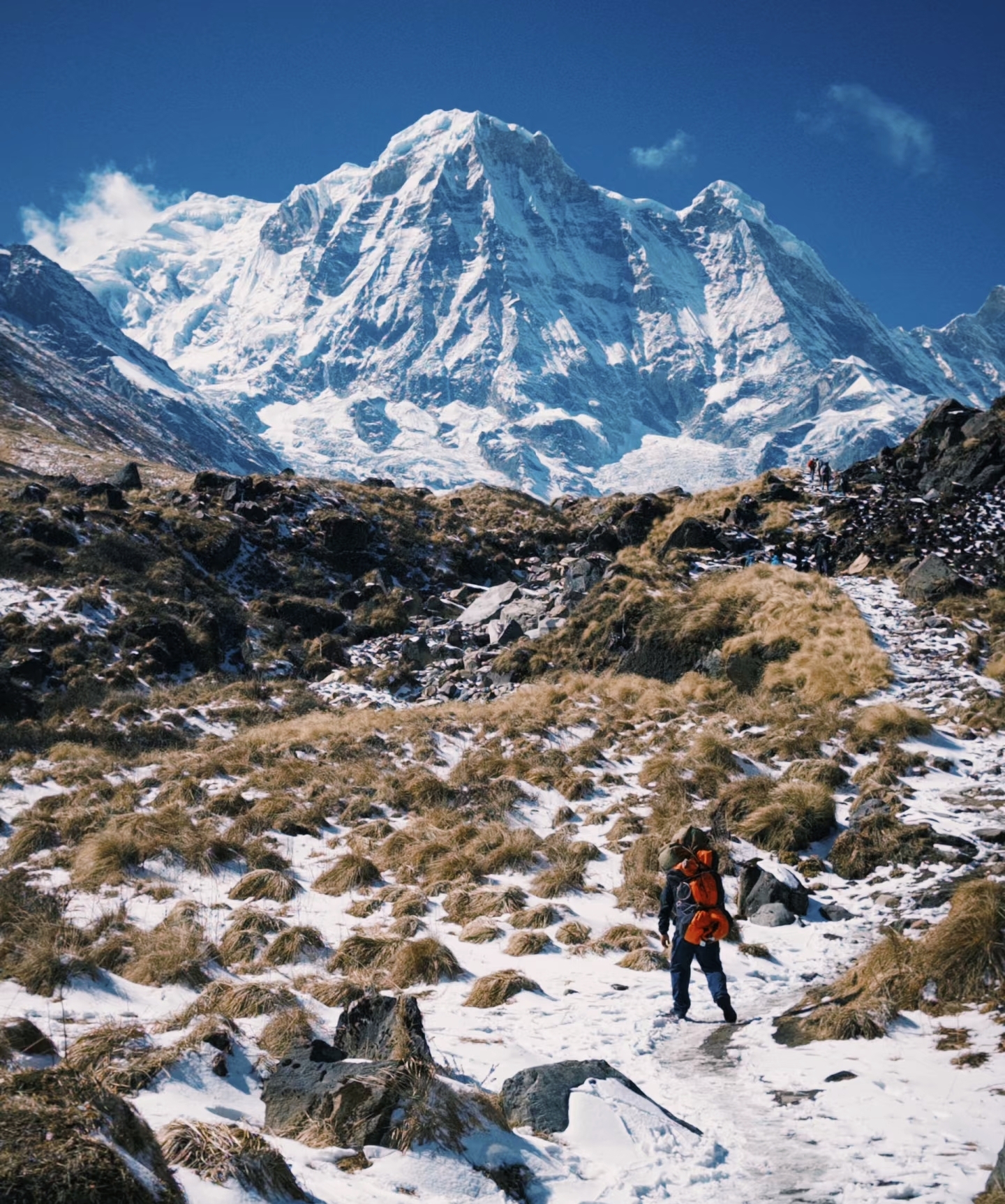 尼泊尔最受欢迎的徒步路线之一,安娜普尔纳大本营(ABC)徒步将带你深入喜马拉雅山脉腹地。沿途不仅能近距离欣赏海拔7000-8000米的巍峨雪峰,还能体验古村落的独特风情。丰富的海拔变化展现多样景观,难度适中、耗时较短,却能带来难忘的徒步体验。
