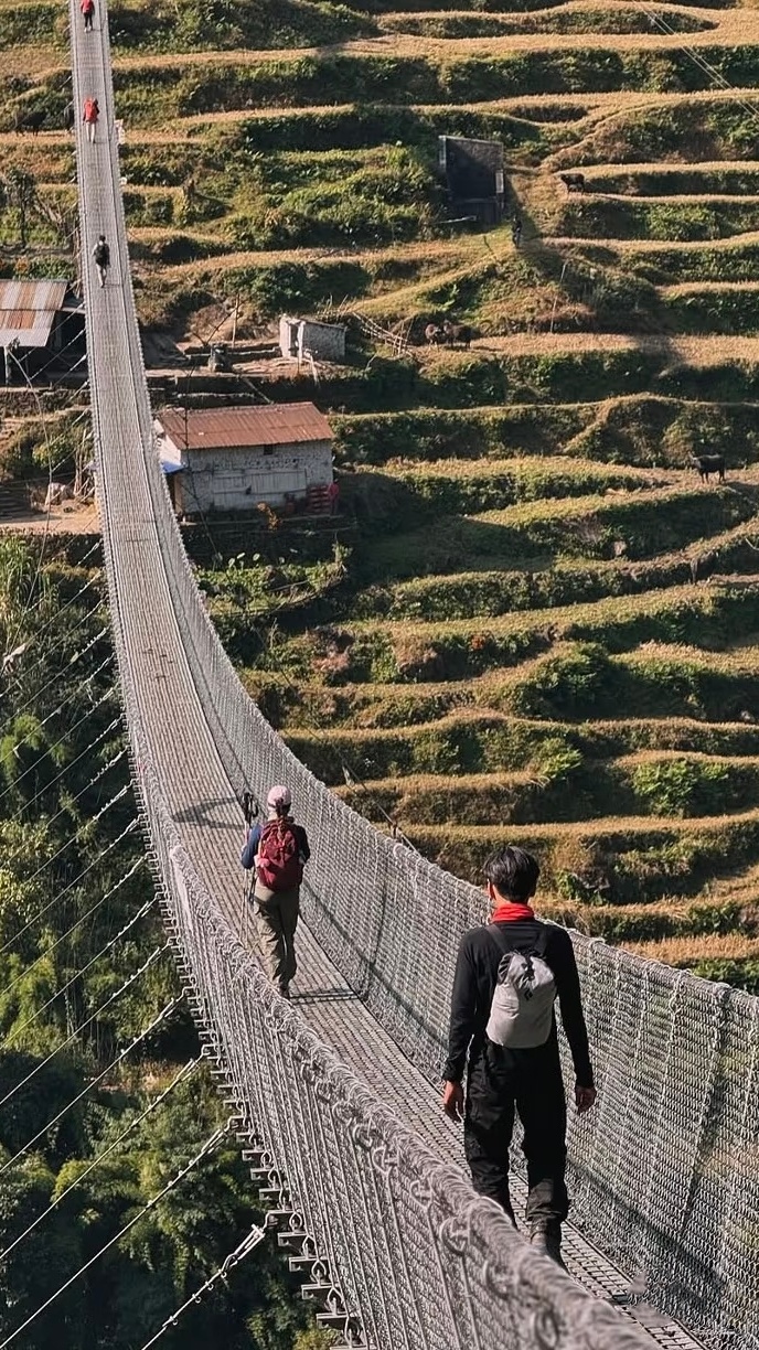 早餐过后,继续下撤从竹林bamboo-乔姆隆,再经过温泉村Jhinu Danda(1780米),下午跨过基努(Jhinu Danda)大桥结束徒步体验,乘大巴返回博卡拉。