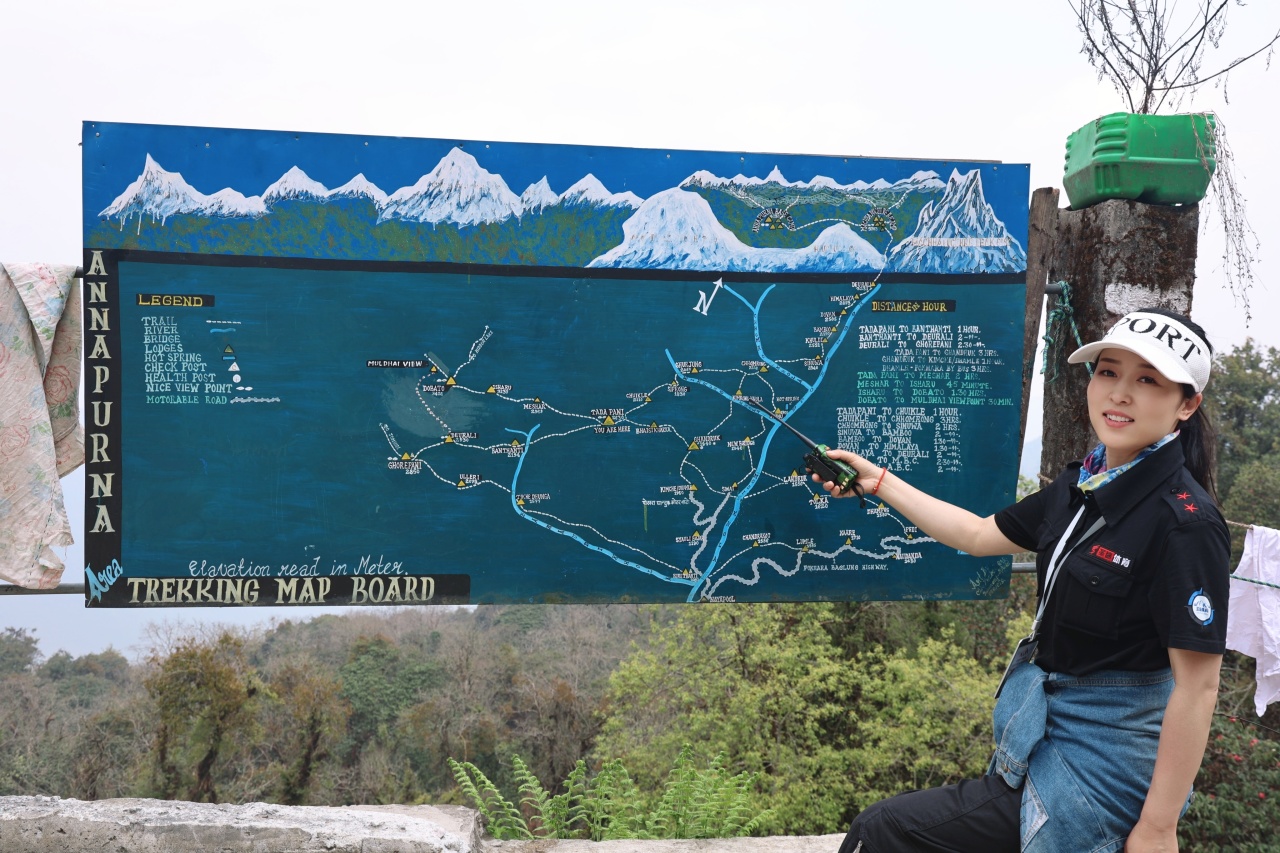 在观景台依次看到道拉吉里峰、安娜普尔娜一峰、安娜普尔娜南峰、鱼尾峰等……感受喜马拉雅群山的震撼。徒步40分钟左右返回客栈,早餐后开始下山,途中经过另一个观景平台,继续欣赏安娜普尔纳群山。