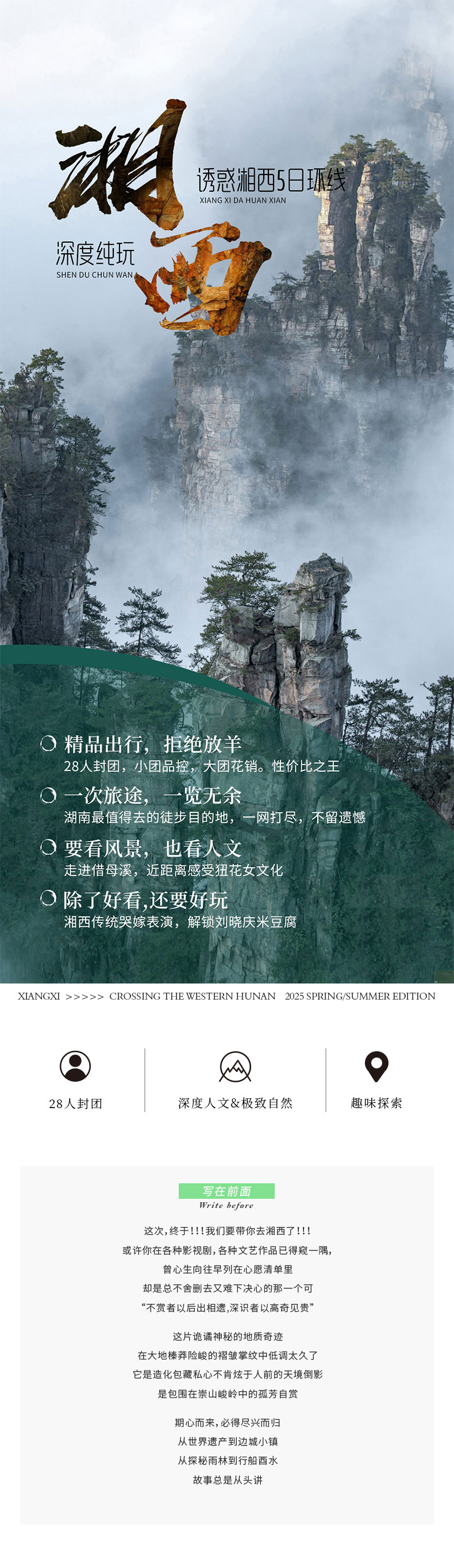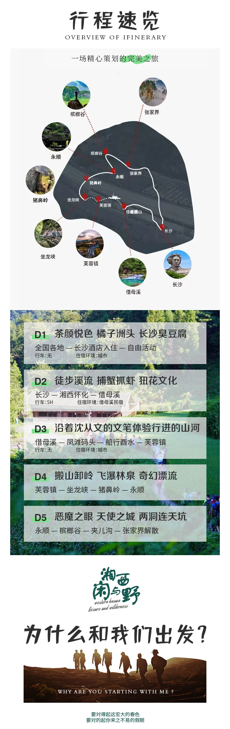 武陵源、借母溪、槟榔谷、芙蓉镇、坐龙峡。大湘西徒步精华一网打尽,趁兴而至,尽兴而归。