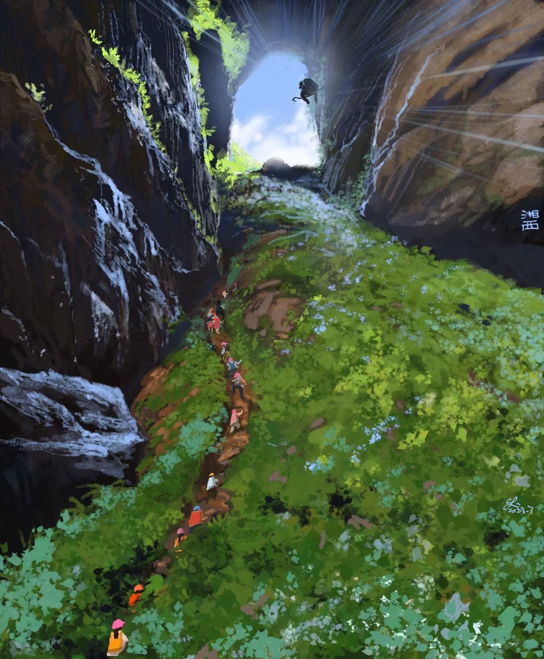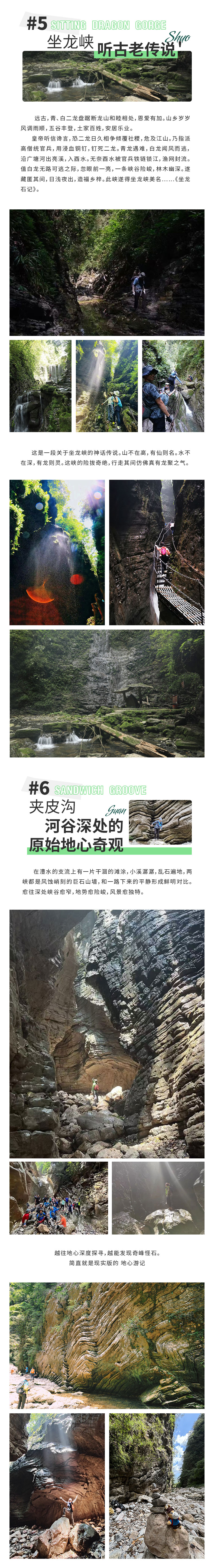 槟榔谷,这里是户外徒步的天堂,全中国都找不出第二条的户外路线。神秘的“天使之城”吸引了无数户外爱好者结伴而来。槟榔谷是集溶洞、探险、峡谷徒步、攀岩于一体,一次性360°全方位让你体验户外的乐趣,其中800米溶洞探险最为刺激有趣。天使之城有一大型喀斯特溶洞,似天使留下的通城暗道。洞内有暗河和数不清的支洞巷道,石灰质溶液凝结而成的石钟乳、石笋、石花、石幔、石珊瑚遍布其中,最大洞宫可容纳千人,因历代多有人洞中迷失,当地人称之为迷洞。迷洞暗河河道曲径通幽,沿着它在黑暗中兜兜转转约800米后,眼前豁然开朗。过了天使之城,沿着崖壁陡坡岩降下切,来到一条狭长地带的山岳型溪谷,就到了世外桃源 “ 夹儿沟 ” 。我们沿着夹儿沟溯溪而上,或一线天峡、或峰回路转、或暗河涌动,一路醉眼朦胧。万物皆有裂缝,阳光、空气和生命之水,使得地缝秘境之处的夹儿沟,演化为生机盎然的,世外桃源!