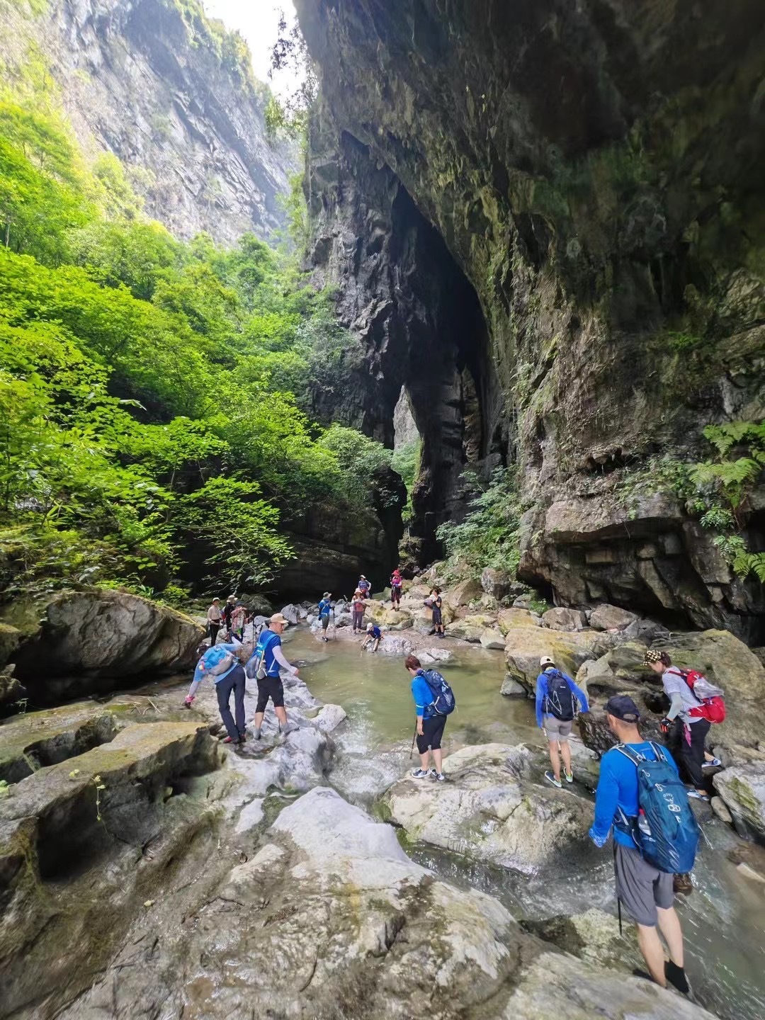 下午我们前往首车镇猪鼻山徒步,这是一个完全未被开发的地方,只有当地人才知道,我们在小路一路下行,一级一步循着古人的脚步,踏出的是轮回和岁月。接着便来到今天的徒步精华--天生双桥,行走于巨石上,脚踩亿年前的巨石褶皱,感受自然的鬼斧神工。