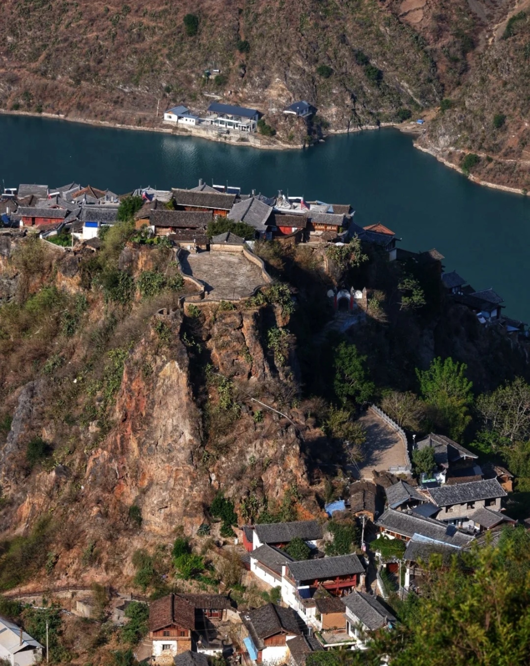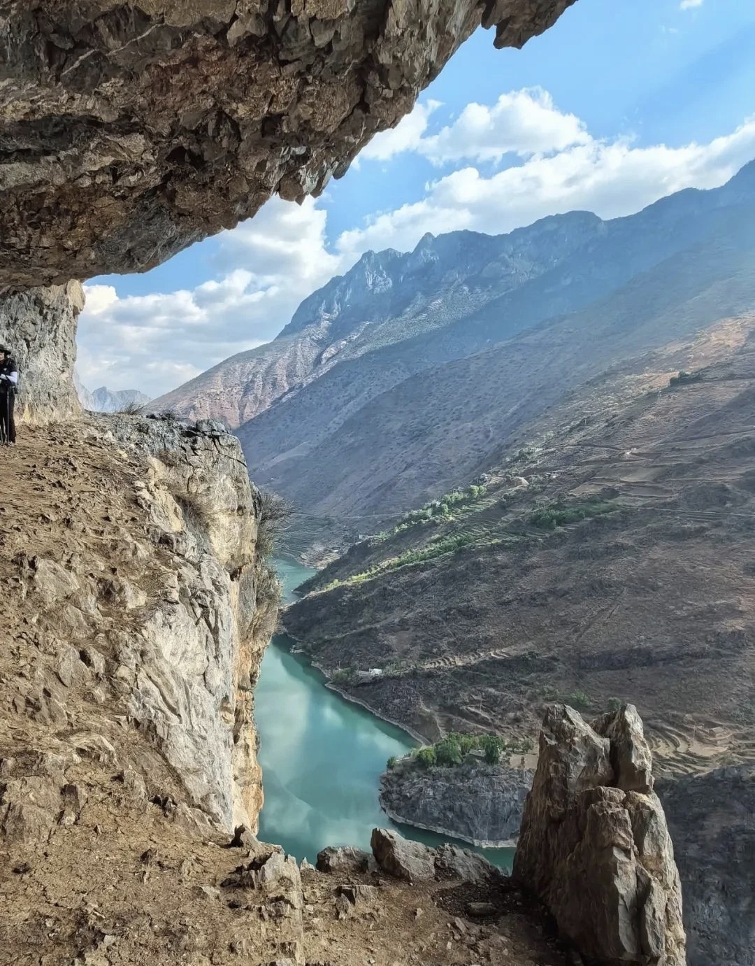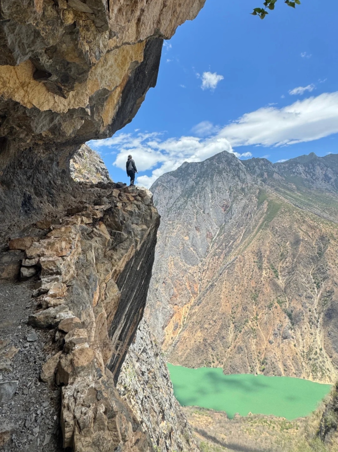 这个悬崖点是石头城边的茶马古道徒步的必经打卡点,很像新疆乌孙天堂湖。站在悬崖峭壁之上,俯瞰着万丈深渊,吸着清新的空气,听着风儿在耳边低语。此刻,感受到了大自然的鬼斧神工,以及人类在历史长河中的渺小。然而,正是这种渺小,让我们更加珍惜生命中每一个美好的瞬间。