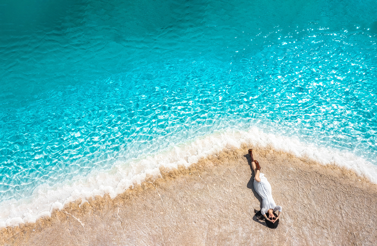5.在茶卡盐湖玩一定得下水才好玩,必须准备一双拖鞋和色彩艳丽的衣服。盐湖玩的时候注意不要踩进盐井里。