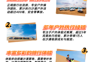 赠送装备:百变头巾、防沙鞋套、定制速干T恤、旅行意外险、完成挑战后的纪念奖牌、集沙瓶、沙漠动植物科考手册等(赠品以实际发放为准)