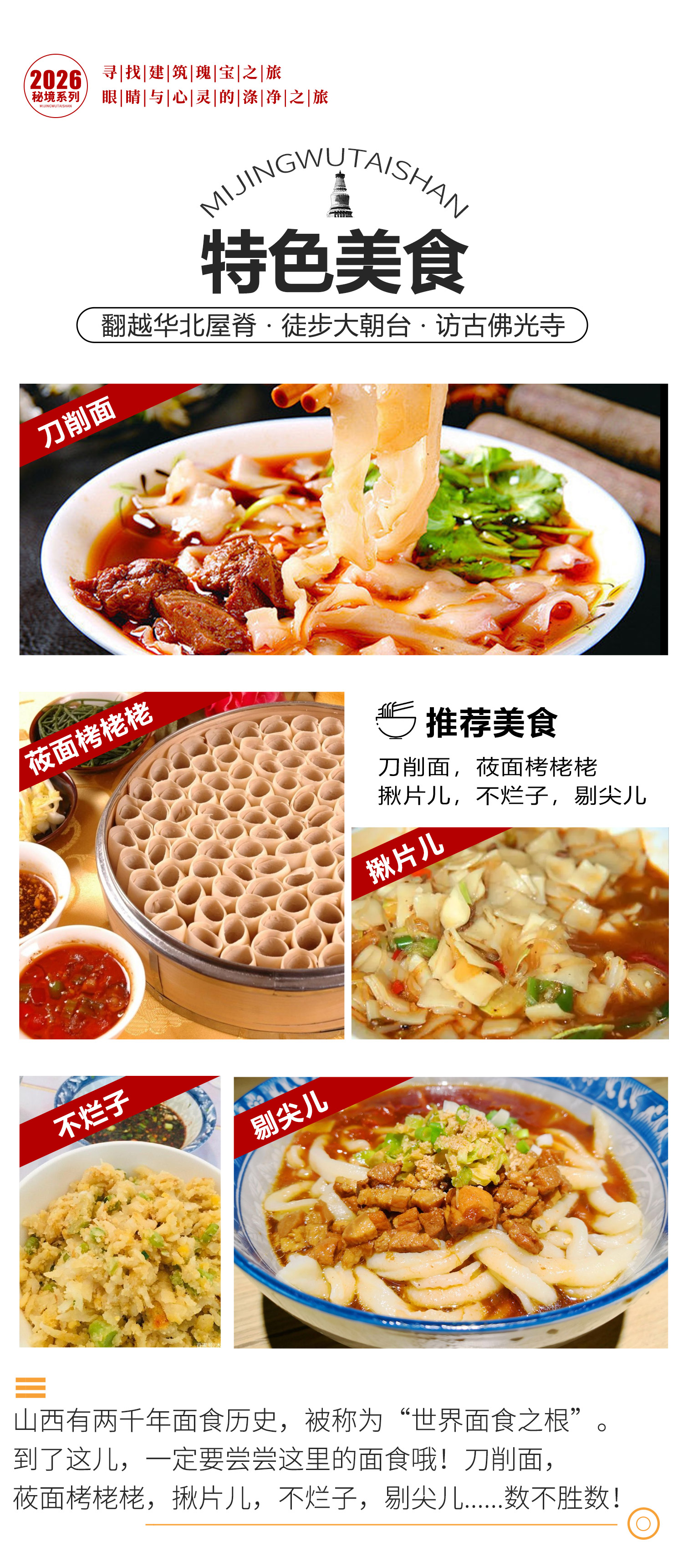 全国各地的爱好者太原集合。早到的小伙伴可以自由前往【晋祠】,游览中国现存最早的皇家园林。也可以前往【山西省博物院】,尽览“五千年中国历史”。别忘了尝尝数不胜数的山西面食,刀削面,栲栳栳,揪片儿,不烂子,剔尖儿......