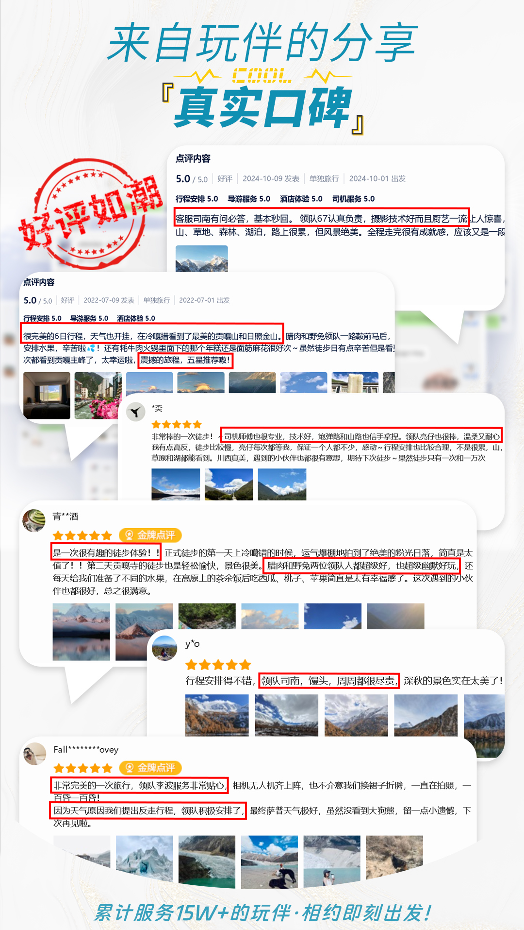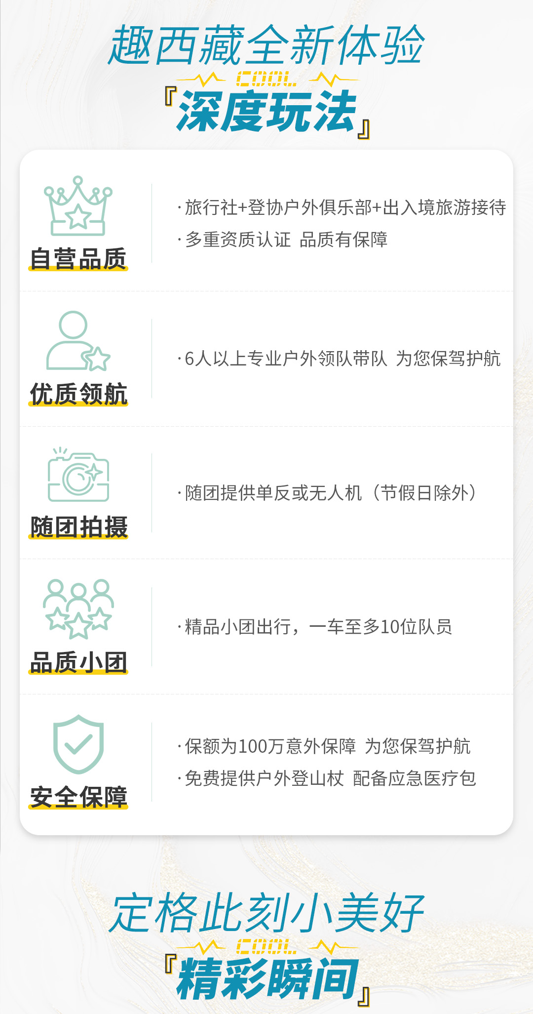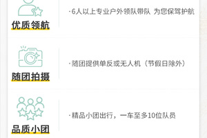 5、自营活动,品质保障,精品小团出行,一车最多10位队员,玩得更安全、更尽兴!