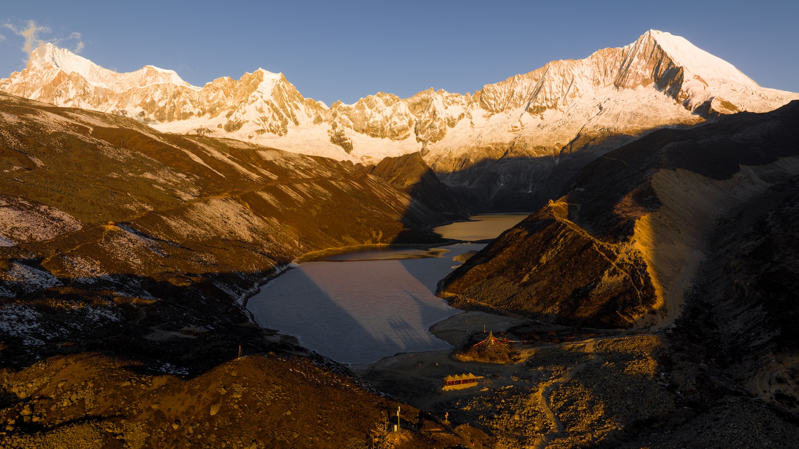 根据天气,早起前往白马林措湖边观日照金山(天气不好则取消),适时前往介久措徒步,沿着山坡爬到山脊处,即可到达一个观景台,美丽的圣湖就在你的眼前,天气好的话巨大的库拉岗日和卡日疆雪山展现在你的面前。体力好的可以沿小路下到湖边拍摄,然后沿湖左侧山脊一路往上观赏库拉岗日冰川下的冰湖。之后返回停车场坐车开始返程,途径卡久寺,这里可以观尼泊尔国鸟---棕尾虹雉(九色鸟),参观完后,乘车前往措美入住。