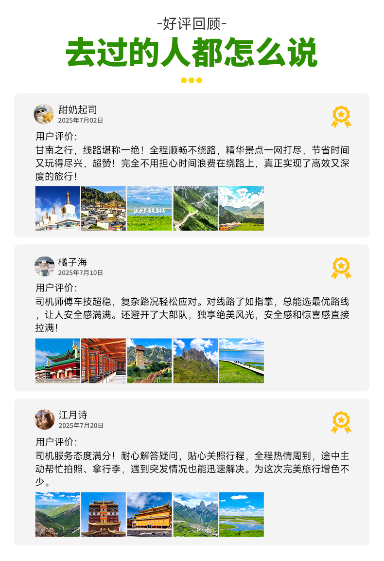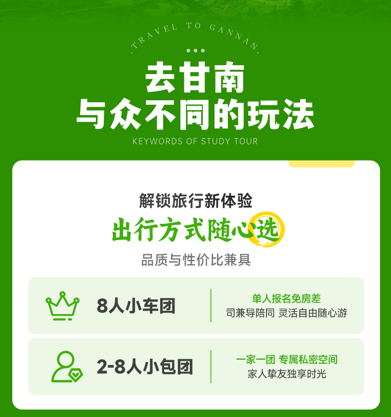2、行程结束当天17:00左右抵达兰州西站,大家可以依据自己的时间,自行选择继续游玩或是启程回家。火车/高铁建议购买18:30以后的车次,飞机建议购买20:00以后的航班。兰州西站距离兰州中川机场约68公里,车程约1.3小时。大家根据自己的航班车次选择返程票。